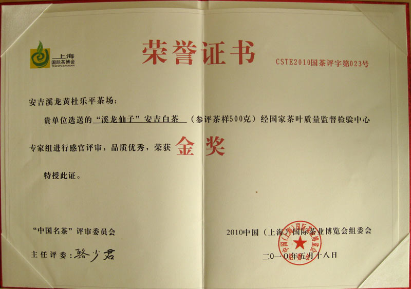 荣获 第七届“陆羽杯”湖州名优茶评比 金奖